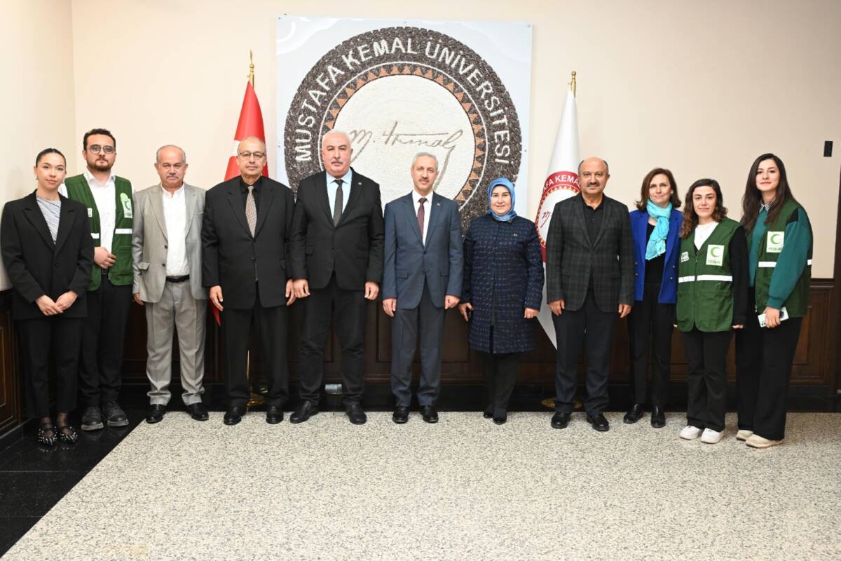 Hatay Yeşilay Cemiyeti Başkanı İbrahim Kuyubaşıoğlu ve yönetimi, bağımlılıkla mücadeleye dikkat çekmek amacıyla HMKÜ Rektörü Prof. Dr. Veysel Eren’i ziyaret etti.