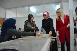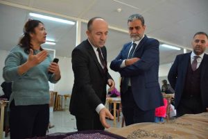 Şanverdi Ailesi, Yetim Merkezi’ni de gezerek, buradaki çocuklara çeşitli hediyeler verdi. Ardından halı dokuma atölyesi, dikiş nakış atölyesi, seramik atölyesi ziyaret edildi. Kaymakam Uygur, ziyaretten duyduğu memnuniyeti dile getirerek, Suriyeli çocukların çizmiş olduğu resimleri AK Parti MKYK Üyesi ve Hatay Milletvekilimiz Fevzi Şanverdi’ye takdim etti. -Cemil Yıldız-