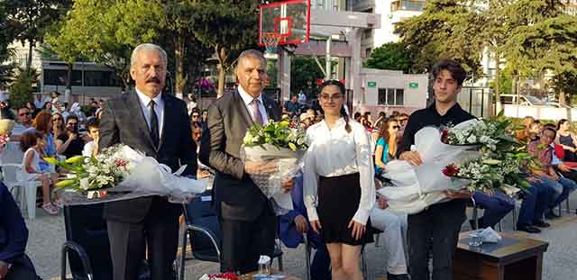 Milli Eğitim Müdürü Kemal Karahan’ın da katıldığı, okul bahçesindeki törende, okulun dereceye giren öğrencilerine diplomalarını Milletvekili Mehmet Güzelmansur verdi. -Cemil Yıldız-