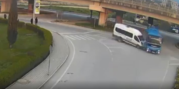 Otogar-Karaksi yönünden geldiği tahmin edilen halk otobüsü, tünelin altından geçip Primemall’ın önünden geçmeye hazırlanırken, Adliye tarafından gelip İskenderun yönüne doğru, çevre yolunun altgeçit alt kenarından geçmek isteyen bir öğrenci servisi ile çarpıştı. Kazada ölen ya da yaralanan olmadı. Ancak şiddetli çarpışmada fatura ağır olabilirdi. Zira çarpışan iki araç da yolcu taşıma hizmeti yapıyor. -Cemil Yıldız-