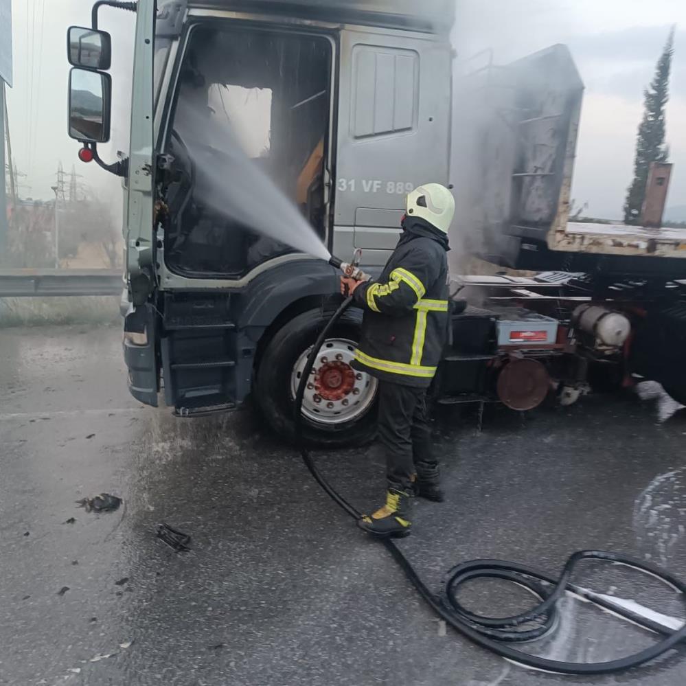 Hatay’ın Payas ilçesinde, Adana-Hatay otobanı üzerinde seyir halindeki bir tırda çıkan yangın, itfaiye ekiplerinin hızlı müdahalesiyle söndürüldü.