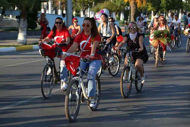 Konuşmaların ardından yaklaşık 100 kadın bisikletlerine binerek şehir turu attı.