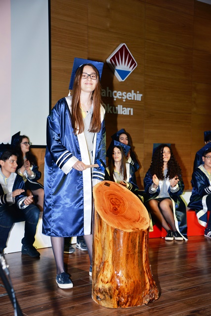 Aralarında Türkiye birincileri Eylül Okuyucu ve Merve Gali’ nin de bulunduğu 24 öğrenciye mezuniyet belgeleri ile başarı belgeleri verilirken, Ortaokul öğrencileri adına Merve Gali, alkışlar eşliğinde mezuniyet kütüğüne brövesini çaktı. Öğrencilerin verdiği keman ve piyano solo konserleriyle renklenen törenin sonunda öğrenciler, daha sonra keplerini havaya attı. -Tamer Yazar-