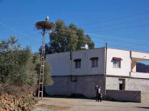 direklerinden birinin üzerinde, leylekler, büyükçe bir yuva oluşturmuş. Çok sayıda leyleğin barınabilmesine imkan sağlayan yuva, özel elektrik kuruluşunca iptal edilmek, dağıtılmak istendi.