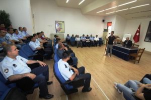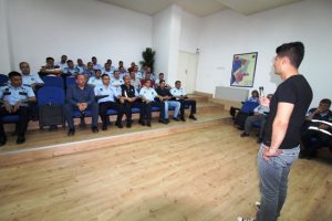Çevik Kuvvet Şube Müdürlüğünde görevli Polis Memuru Şahin Erener tarafından verilen eğitim sonunda zabıta memurlarına ‘Gaz Spreyi Eğitimi’ verildi.