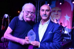 Moğollar Grubu’nun Solisti Cahit Berkay, gerçekleşen konser nedeniyle kendisine sunulan plaketi Arsuz Belediye Başkanı Nazım Culha’nın elinden alırken, 50 yıldır hiç bitmeyen enerjisi ile sahne almaya devam eden Moğollar, geride ‘yine bekleriz’ diyen çok sayıda müzikseverleri bıraktı. -Mutlu Yanık-