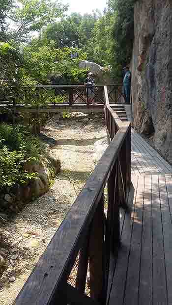 hattayız. Titus Tüneli ve Beşikli Mağara için adımlamaya hazırız. Tünel’e inen yolu işaret eden tabelayı es geçip, yolun üst kısmından ilerlemeyi tercih ettik. Çünkü bu yol üzerinde yer alan satış standına uğramak istiyoruz. Günlerden Cumartesi ve alanı ziyaret etmek isteyenler yüzünden oldukça kalabalık bir güne dalıyoruz, ama… Nedeni bilinmez, satış standı kapalı! Bizler gibi aynı yolu izleyen ve satış standına gelenler de eli boş dönüyor! Saatler öğleden sonrayı gösteriyor!