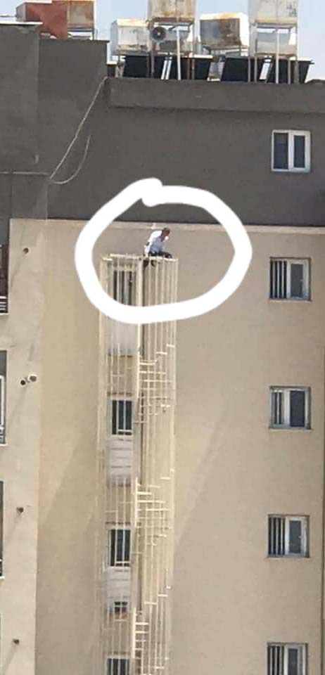 Antakya’da, apartman yangın merdiveni tepesine çıkan bir kişi intihar etmek istedi.