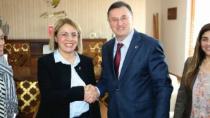 Doğu Akdeniz Bölge Toplantısı’na katılmak için Hatay’a gelen CHP Kadın Kolları Genel Başkanı Fatma Köse ve MYK üyeleri, Hatay Büyükşehir Belediye Başkanı Doç. Dr. Lütfü Savaş’a HATMEK’teki makamında bir nezaket ziyareti gerçekleştirdi. Gerçekleşen nezaket ziyaretinde, Başkan Savaş’a eşi Prof. Dr. Nazan Savaş da eşlik etti.