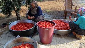 İlimizdeki ev hanımları salçadan turşuya, kurutmalık patlıcan ve kabağa kadar çeşitli ürünleri imece usulüyle kışa hazır hale getirmeye başladı. Çukurova’da sebzelerin yoğun olarak yetiştiği yaz aylarında kadınlar tarlada ve bahçede çalışarak aile bütçelerine katkı sağlarken, ev hanımları da ürünlerin bol olduğu dönemde kış hazırlıklarını yapıyor. Hatay’da birbirlerine yardımcı olmak için bir araya gelen kadınlar, imece usulüyle işlerini yapıyor. Yemeklerin olmazsa olmazı arasında yer alan ev yapımı salçalar da hazırlanan kışlıkların başında yer alıyor.