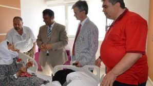 Hatay Devlet Hastanesi’ne sürpriz bir ziyarette bulunan Vali Yardımcısı ile kurum yöneticileri, hastalara çiçek takdim etti. Hatay Vali Yardımcısı Bilal Ölmez, İl Sağlık Müdürü Dr. Ümit Mutlu Tiryaki ve Hatay Kamu Hastaneleri Genel Sekreteri Dr. Sebahattin Yılmaz, birlikte Hatay Devlet Hastanesi’ni ziyaret etti. Heyet, hastalara geçmiş olsun ve acil şifa dileğinde bulundu, çiçek takdim etti. -Cemil Yıldız-