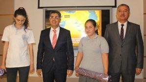 Kompozisyon ve Şiir Yarışması’nda dereceye giren öğrencilere ödüllerini; Samandağ Kaymakamı Cahit Çelik, Samandağ Cumhuriyet Başsavcısı Mustafa Sesli ve Samandağ Belediye Başkan Yardımcısı Mehmet Yıldız verdi. -Gökay Gökdemir-