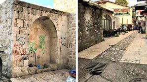 Burası, Antakya kent merkezindeki Ulu Cami’nin arkasındaki dar sokağın içinde yer alan bir çeşme. Kullanım dışı kalan çeşmesi, akmayan suyu ve yazılıp çizilen taş bedeniyle, “buradayım” diyor ama!